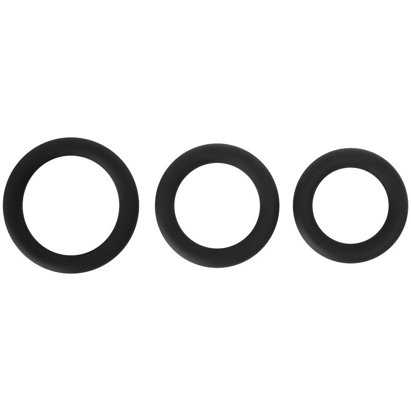 Adam & Eve Silicone Penis Ring Set - Black Cock Rings - Set of 3 Sizes